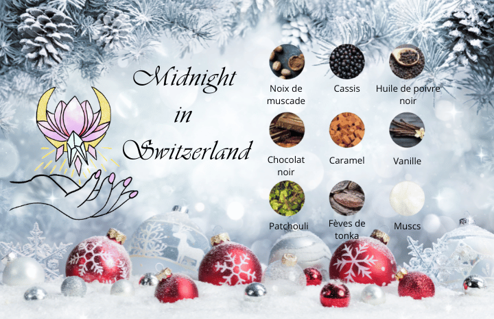 Chaque fondant reprend la composition de parfum Midnight in Switzerland (voir photo), un mélange gourmand, enveloppant et légèrement épicé, qui évoque les soirées d’hiver, les marchés de Noël et la douceur des moments partagés.